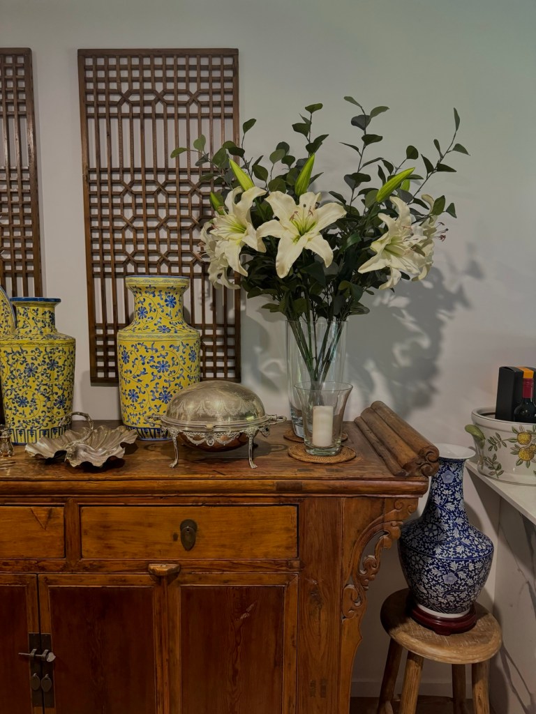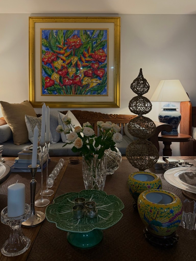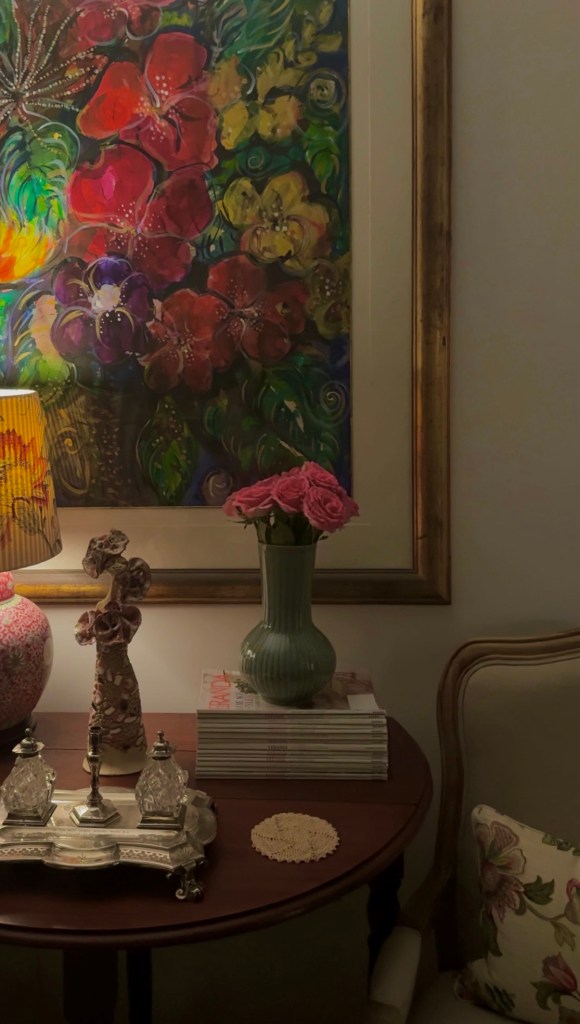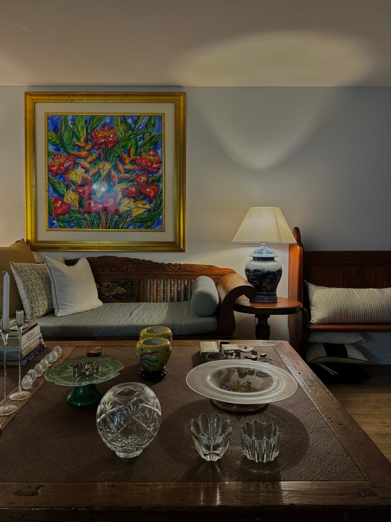 Defining our ‘style’ is almost impossible. For us, home is a curated jumble of colour, texture and patterns. Equal parts soft and bold, our home is filled with furniture and decor passed through generations, art and antiques purchased while travelling, and newer pieces we’ve found here and there.